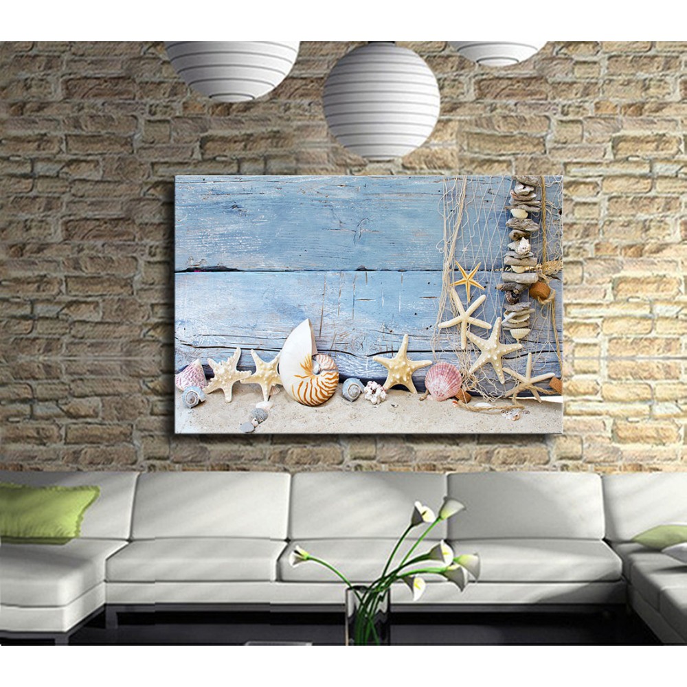 Ağa Takılan Deniz Kabukları Yıldızları Kanvas Tablo