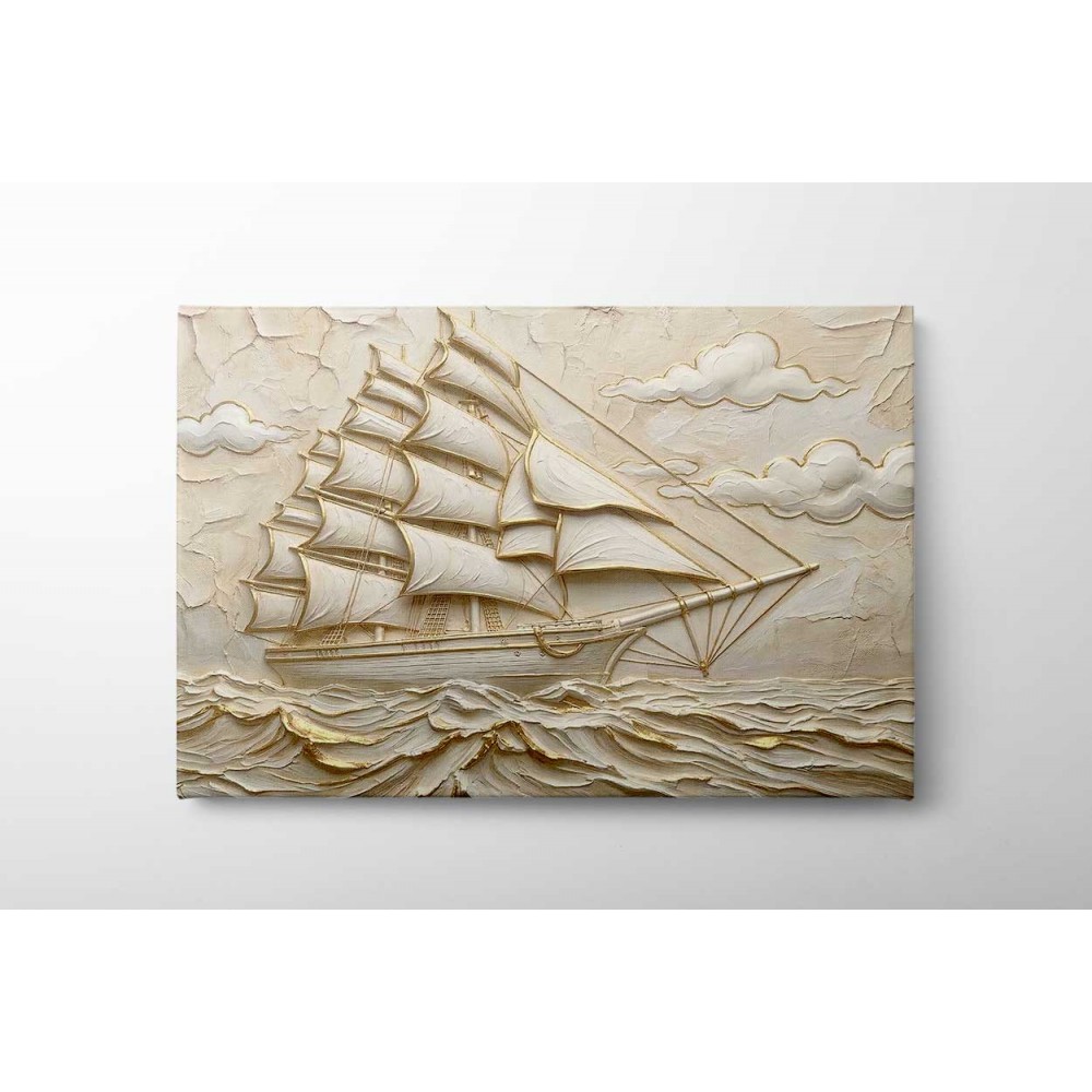 Alçı Görünümlü Yelkenli Kanvas Tablo