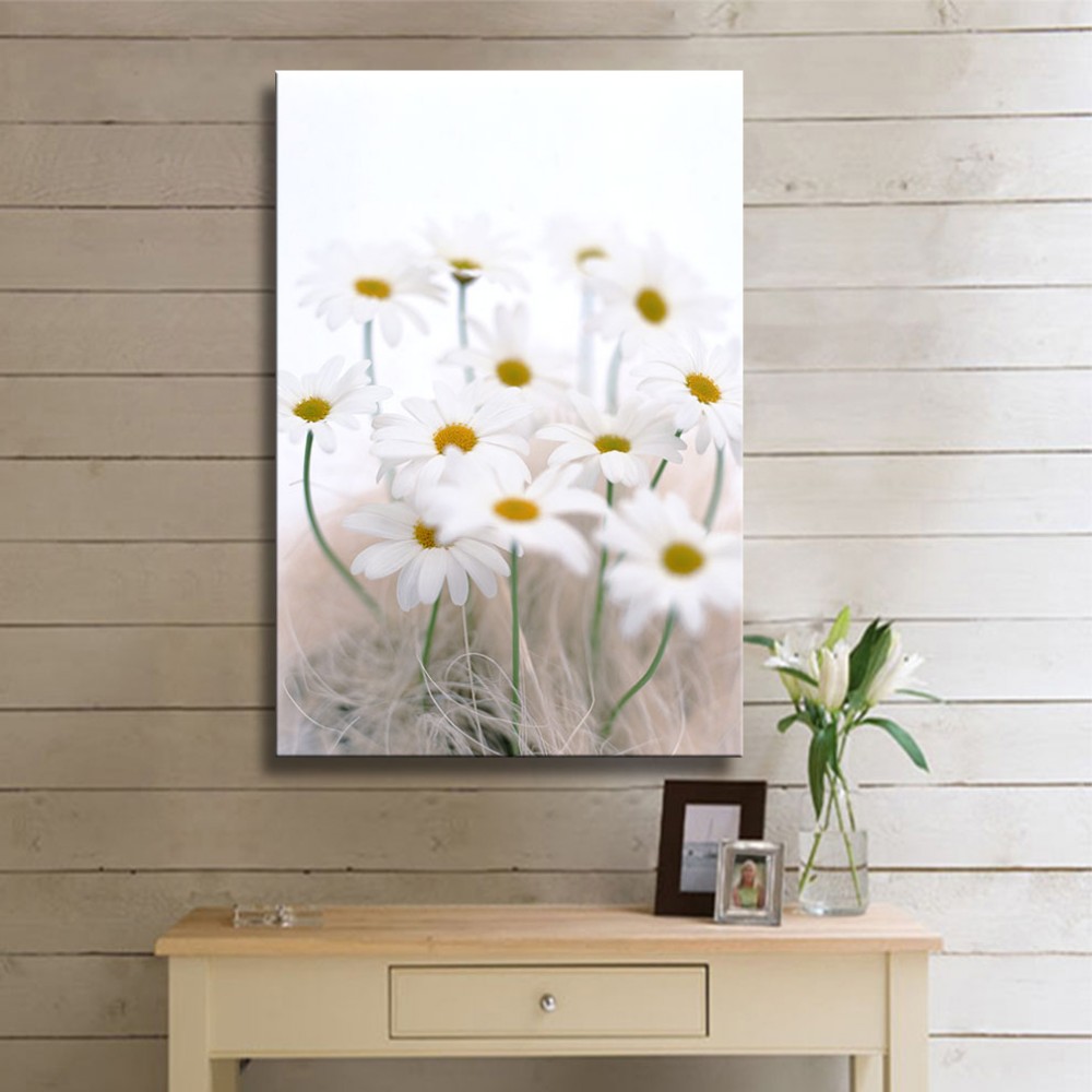 Doğal Çiçekler Papatyalar Dikey Kanvas Tablo