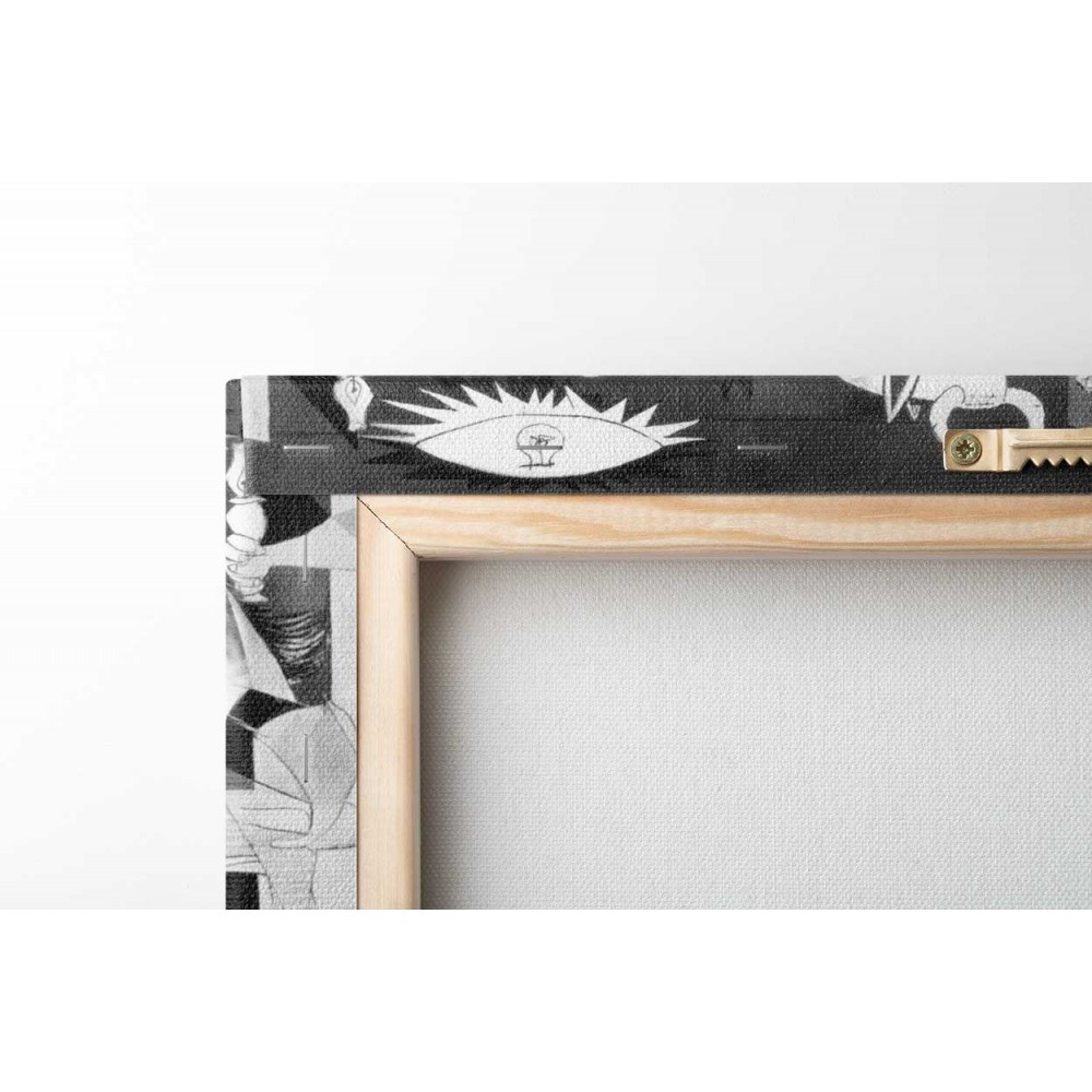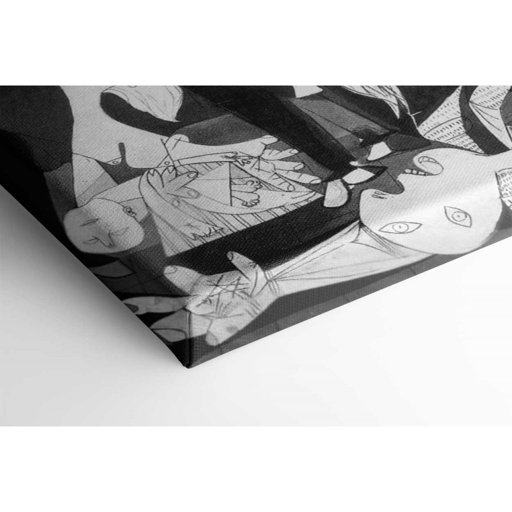 Guernica kanvas tablosu, Pablo Picasso'nun ikonik savaş karşıtı başyapıtı Guernica'nın bir reprodüksiyonudur .1937'de yapılan bu anıtsal eser, İspanya İç Savaşı sırasında Bask kasabası Guernica'nın korkunç bombalanmasını tasvir ediyor.