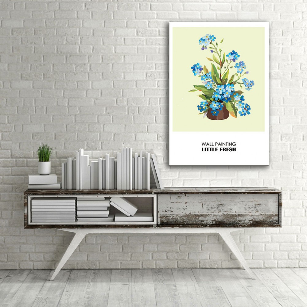 Küçük Mavi Mineler Dikey Kanvas Tablo