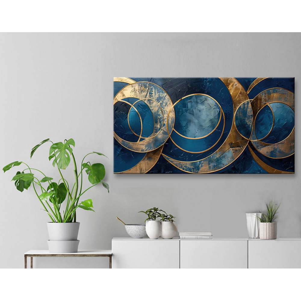 Mavi hareleri ile daha sofistike daha marjinal daha sakin bir tablo almak isteyenlerin modern dokunuşlar ile oluşturduğu salon mobilyaları ile harika uyum sağlayacak ve odanın görünümünü tamamlayarak bir üst seviyeye taşıyacak parçalardandır.