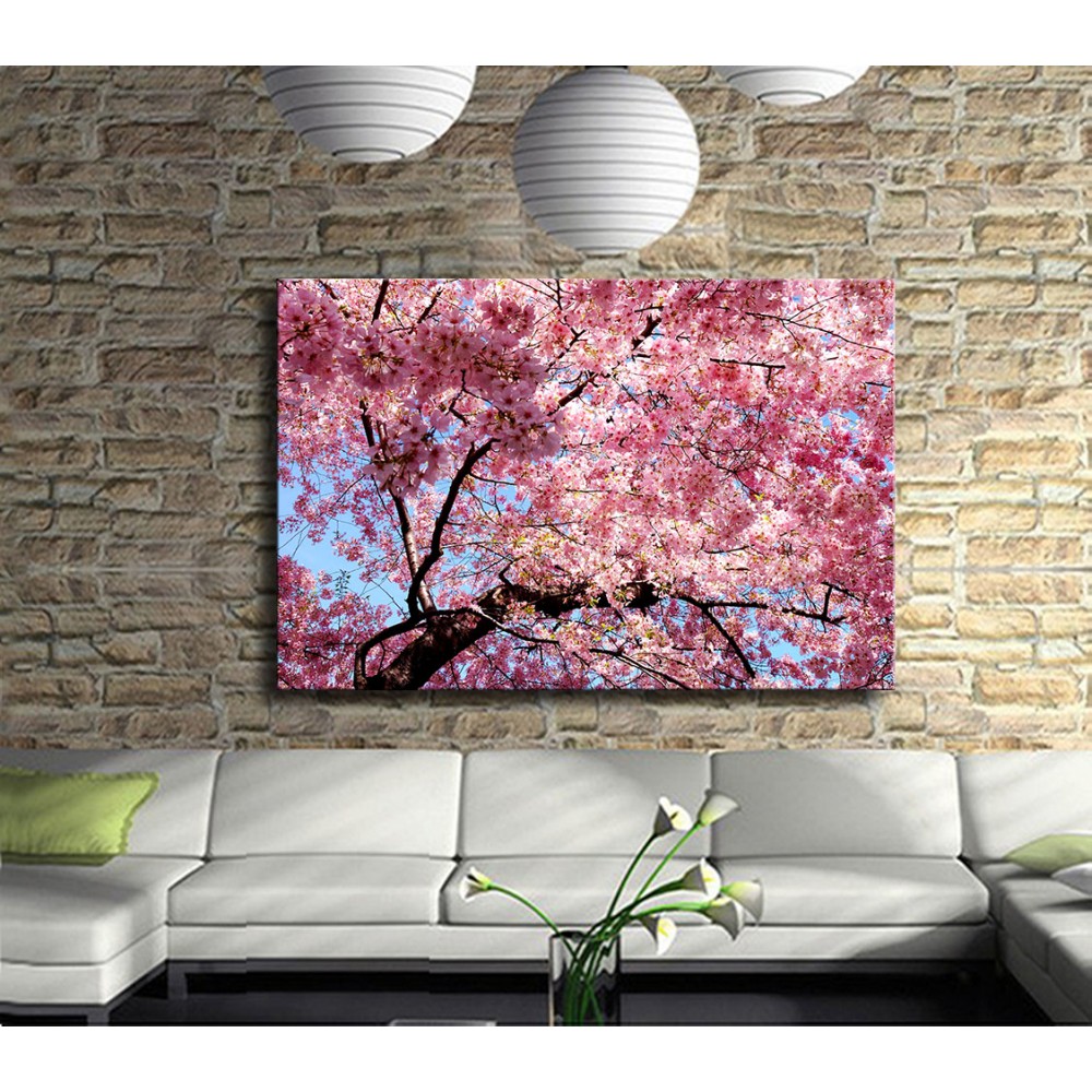 Pembenin ve kiraz ağacının çiçeklerinin tüm samimiyeti neşesi kanvas tablomuz ile evinizin duvarını süslesin...