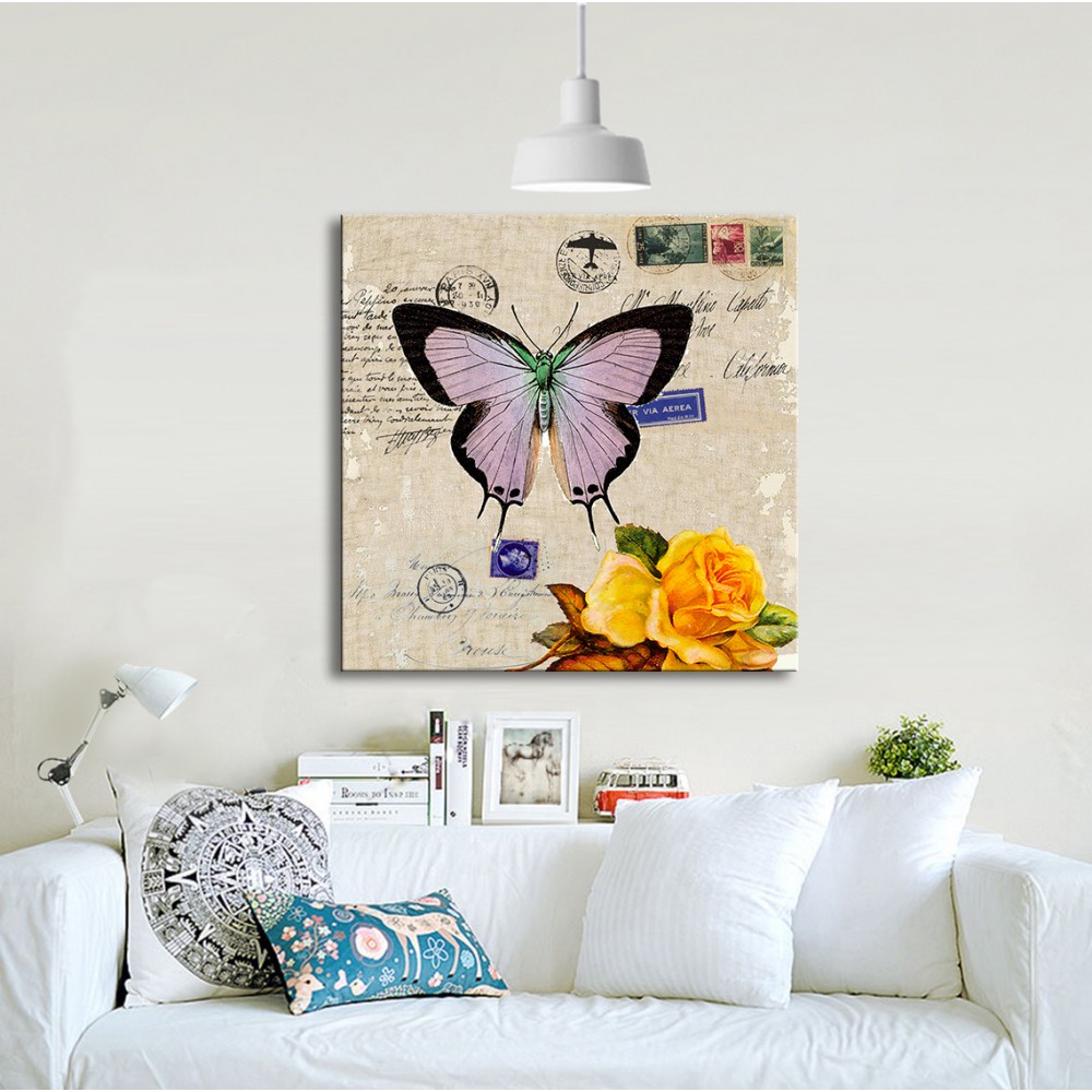 Mor Kelebek Kanvas Tablo