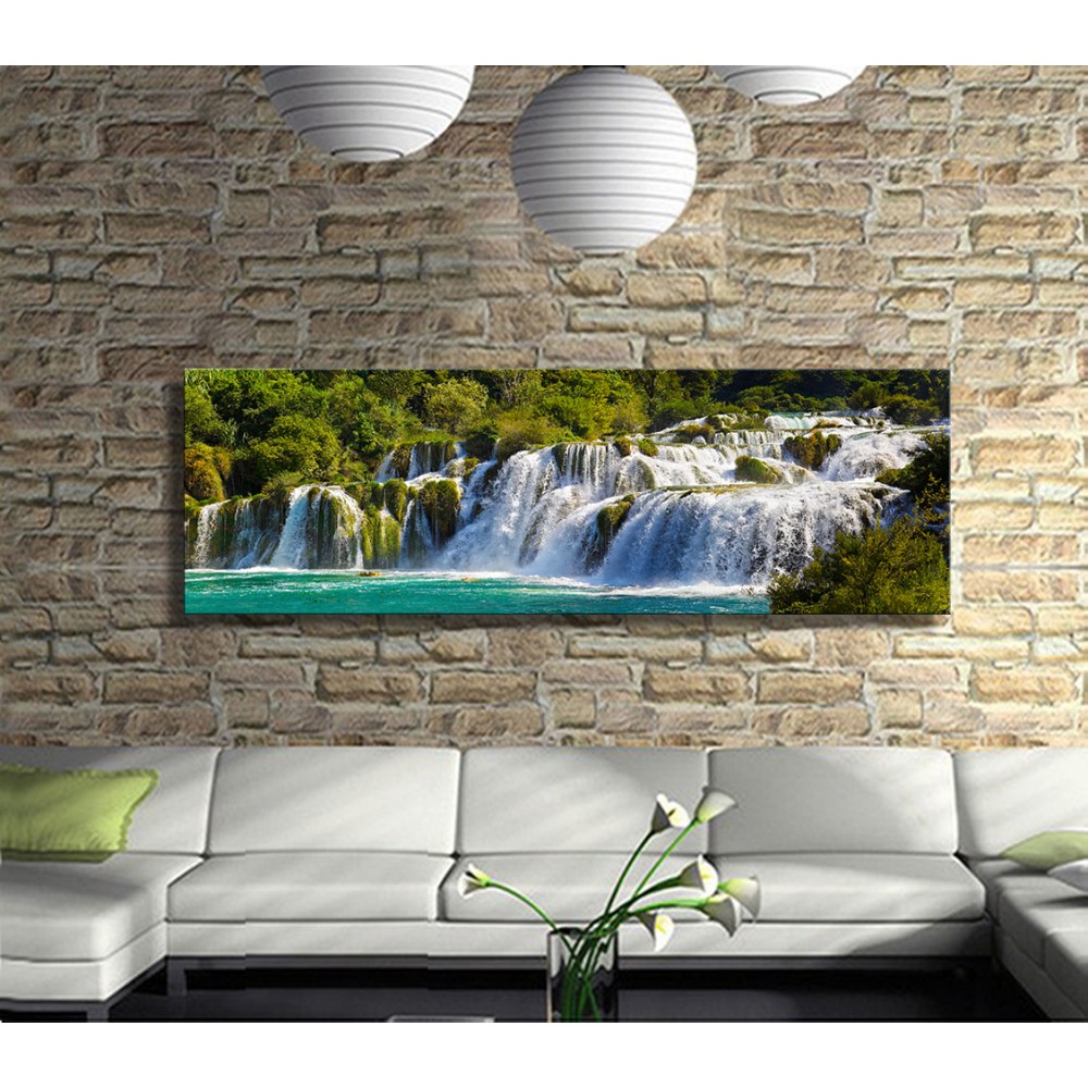 Şelale Manzarası Panoramik Kanvas Tablo