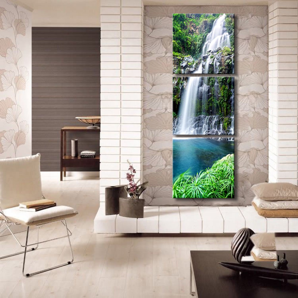 Şelalenin Şarkısı Dikey Panoramik 3 Parça Kanvas Tablo