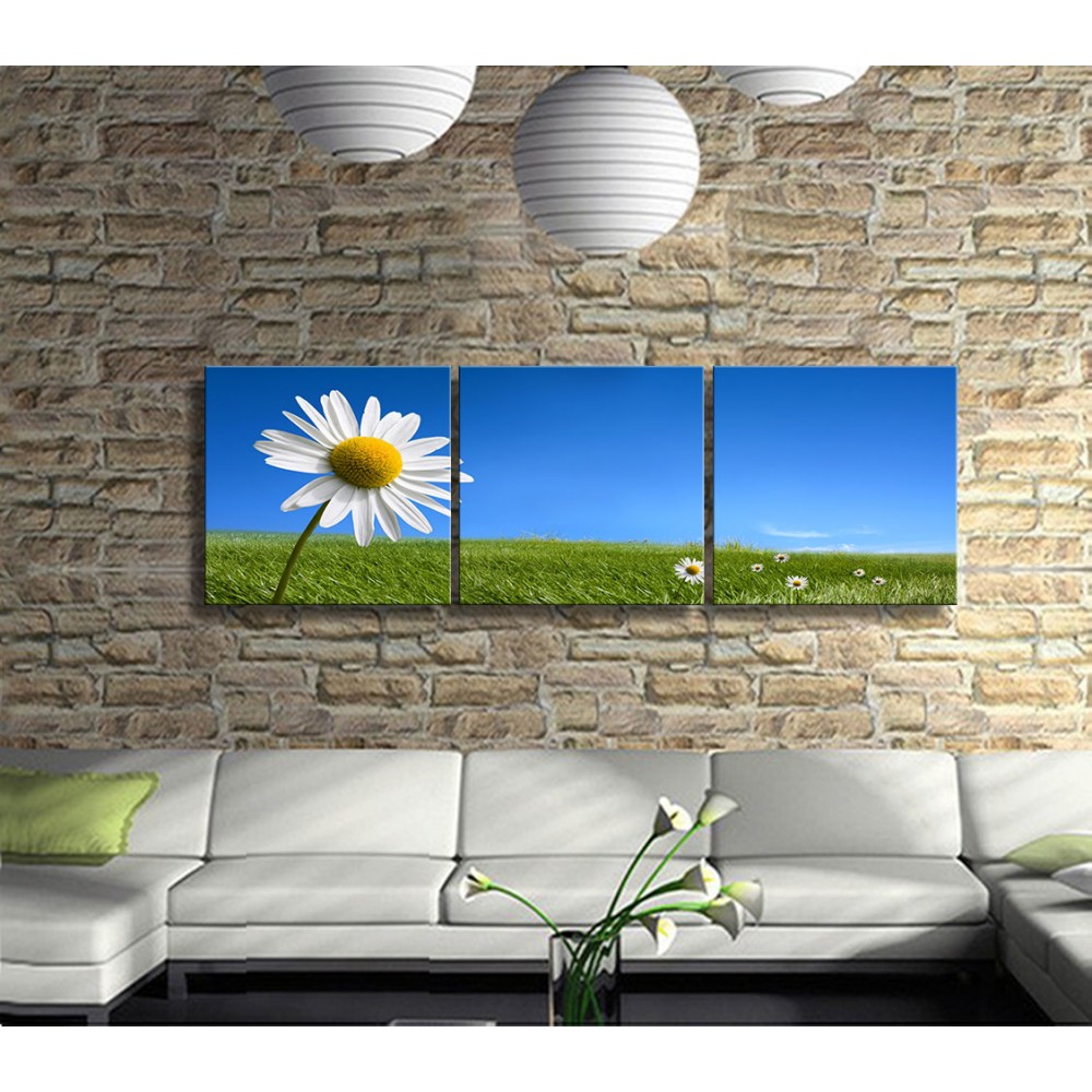 Selfie Çeken Papatya Panoramik 3 Parça Kanvas Tablo