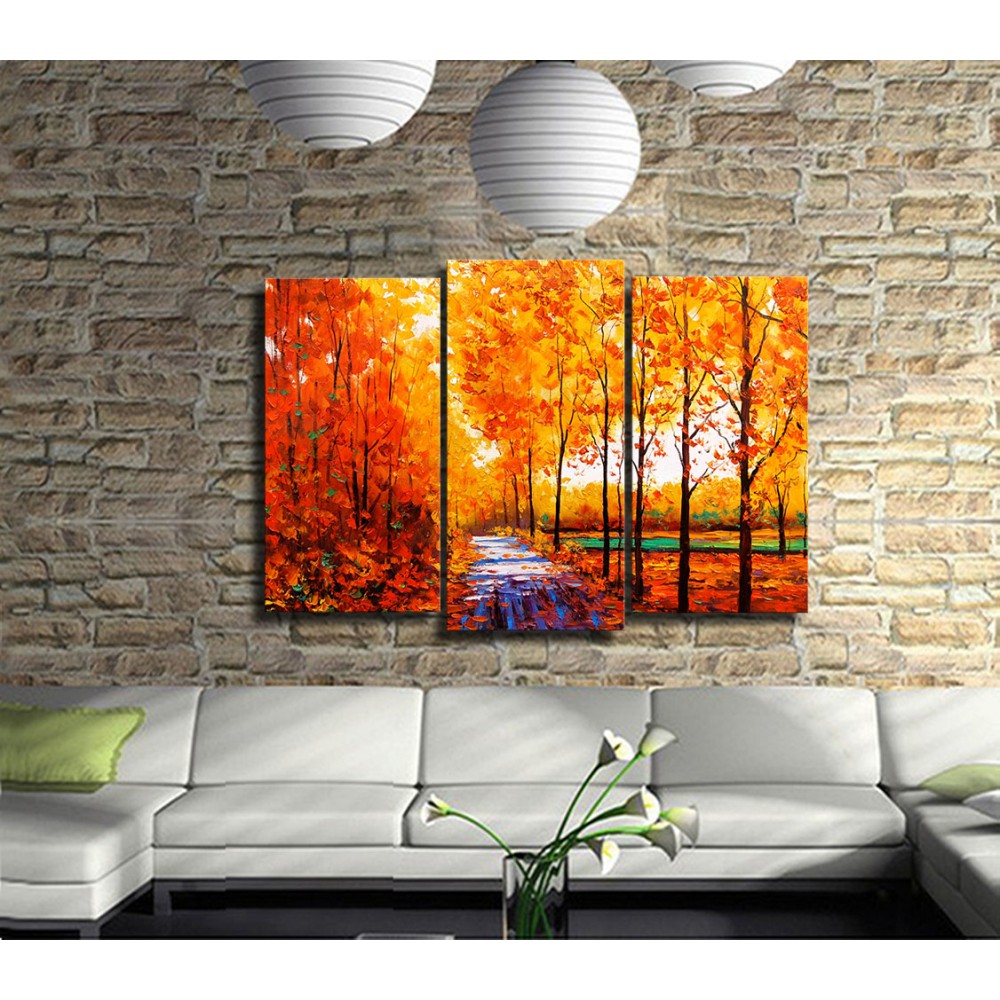 Sonbahar Sarı Yapraklar 3 Parçalı Kanvas Tablo